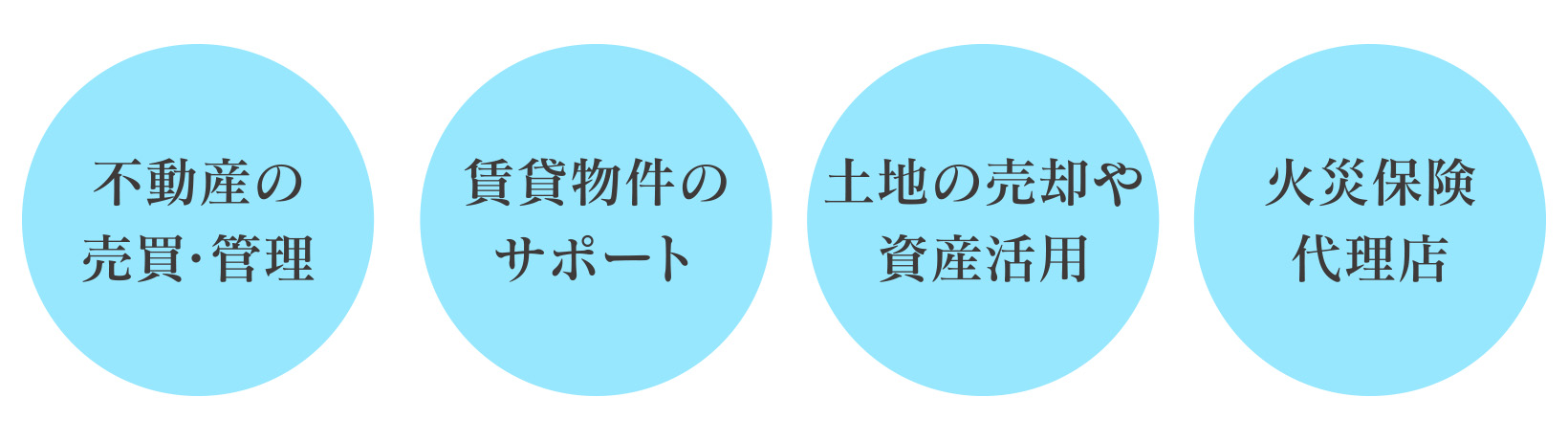 大和地所は、マンション、戸建物件の売買・賃貸、不動産管理から、土地の売却や資産活用、アパート・駐車場の売却・管理など、不動産に関する提案から運用までトータルでサポートしています。私たちは、不動産に関するご要望にお応えしながら、それに伴う様々な不安、疑問等に向き合いながら、お客様が納得し満足いただけるように全力でお手伝いさせていただきます。